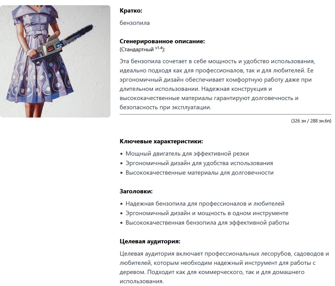 Стоит ли копировать текст из интернета? Лучше используйте для описания товаров нейросеть Текстаграм. Загрузите фото на сайт и получите готовый текст. И это будет ваш контент, ничей другой. К тому же, помимо описания товара, Текстаграм предложит три варианта заголовков, описание ЦА, ключевые характеристики товара.